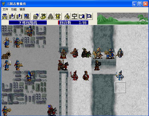 以前从来没有达成条件,得到战神徽章,什么堵北门,堵南门的,这些方法根本不好使嘛,你再怎么堵城里面有兵偷袭你,你还混乱,降低攻击,防御什么的.自从知道了东门大逃亡后,今天试验一下,要不是撤退时候小小的失误我就直接一个人不死了,把张菁挂了,其他人全活下来了,发现吸引火力很重要啊,我的张辽在那里基本成了个盲点,吕布把火力全吸引走了.贾诩放大火,那个图不对,应该是烧火图,怎么是减敏捷图啊?幸好存档了,有一回合直接烧死好几个.第17回合,城里的兵早没了,我把人全围着吕布放了一圈,呼啦一下又出一大群,幸亏都是小角色,我陈宫也防住了......哈哈,高兴啊