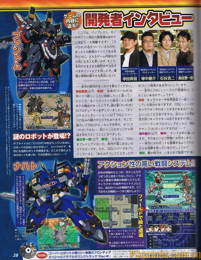 最新的《FAMI》上终于公布了此前4P透露的带擦边球的掌机机战新作,登陆平台也是早已内定的NDS,这款游戏名为《无限的边境 超级机器人大战OG SAGA》,游戏类型为RPG,大家熟悉的那些原创机体都会登场,而本作最大的卖点就是战斗时的RY镜头,用最近十分流行的词就是果然很黄很暴力口牙~