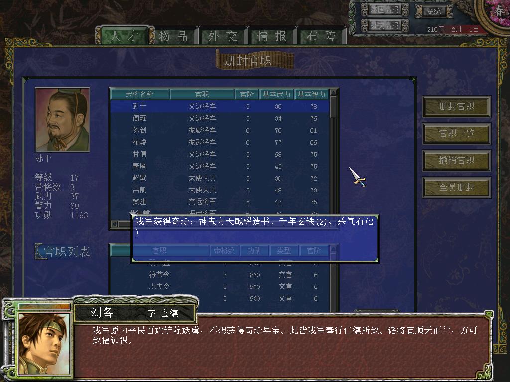 忘记了说,这个值修改的是打仗的功勋,对我方和电脑都一样