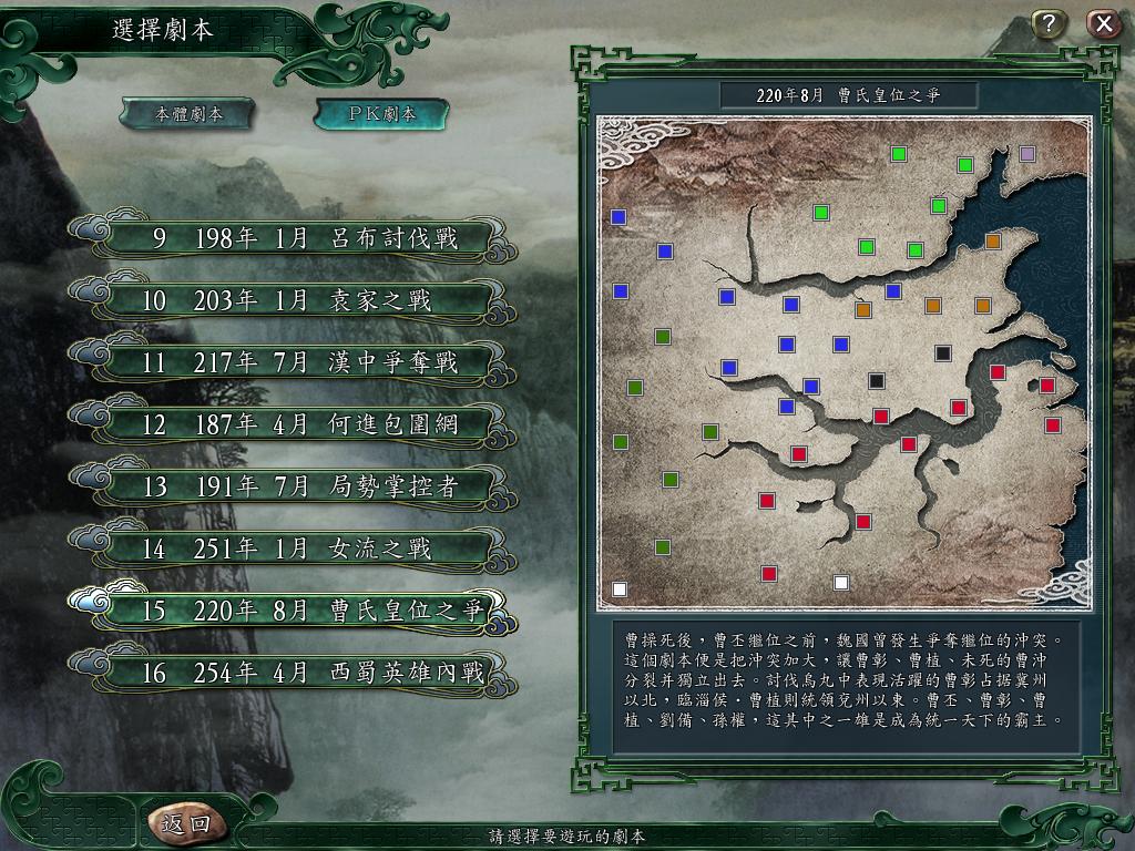 我在无聊之时觉得三国志9的剧本不错,IF剧本也是很好的,因此把三国志9的剧本搞到三国志11去。