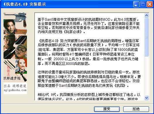 1、本套剧本改编自《三国志五简体中文版》,免CD,可在9x/2k/xp/2003上执行(画面256色)。需光驱,虚拟光驱也行。不需安装,不写注册表,解压后即可游戏,直接运行《抗倭志.exe》。