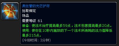 装备后效果:在成功施放法术后有2%几率可以触发100%魔法恢复的效果,持续15秒。