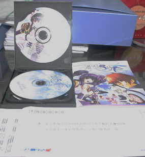 拆开后再来一张:里面的东东果然是国产游戏的典型配置:4张光盘、1本游戏说明书、一张废纸、一废信封——要玩家陶腰包回寄的东东能不废么-_-|||