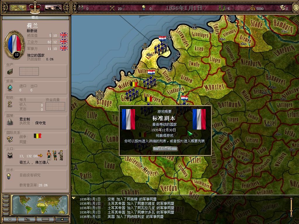 开局就处在战争状态...集中兵力,所有4个师统一指挥,攻打安特卫普,叩开通向伪政府首都布鲁塞尔的大门!