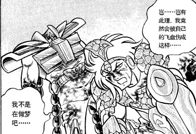 御夫座白银圣斗士加比拉临终遗言:岂……岂有此理,我竟然会被自己的飞盘伤成这样,我不是在做梦吧?