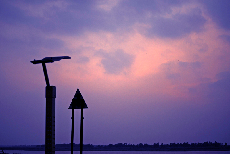 应该是个交通警告标志。P1有山雨欲来的预兆性,P2P3这种蓝中带紫偏红的色彩很梦幻。