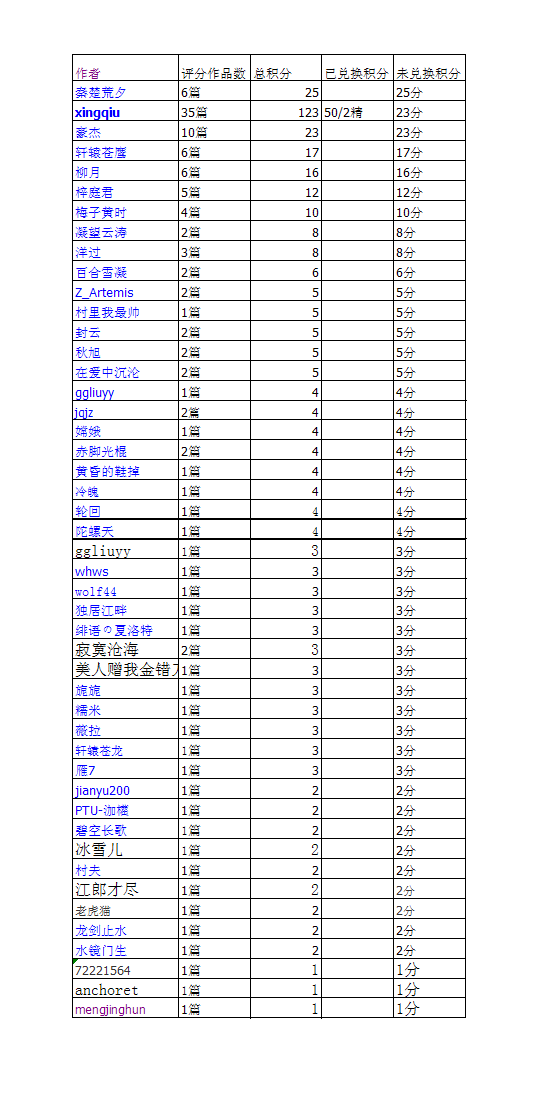 标题: 第十七期现代短诗评分公告, 附:截止第十七期所有短诗评分作者积分榜