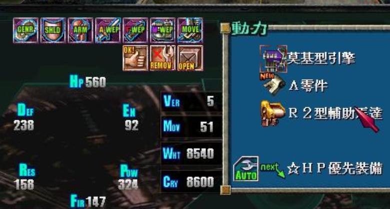 (这就注定了卡基摩特型机甲的悲剧,虽然该机甲天生高移动力“这个是机甲型机身特点,不在属性里显示”