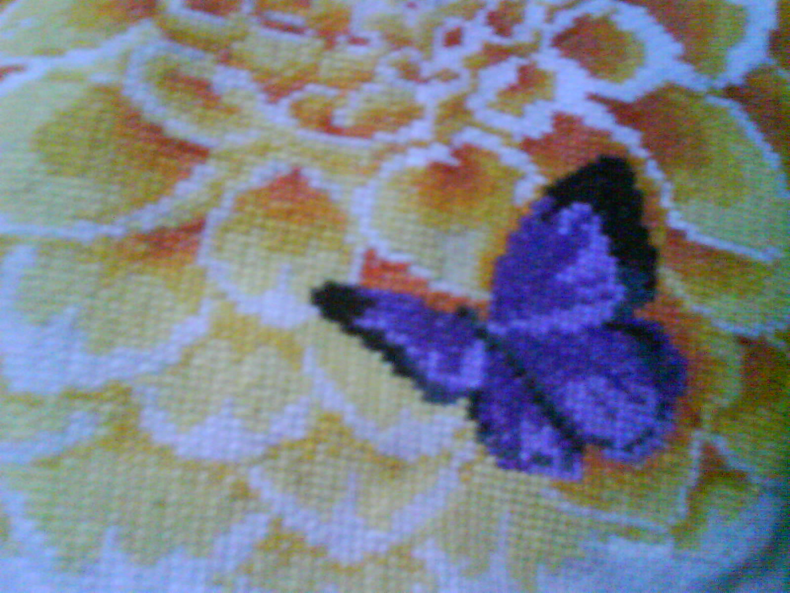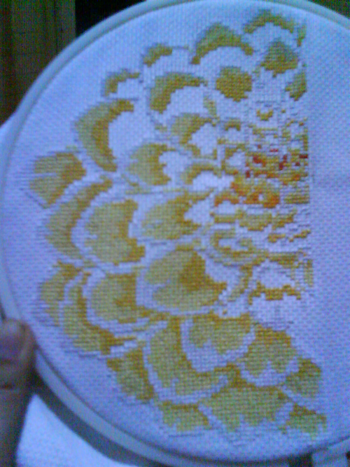 : [绣完一半花的样子]