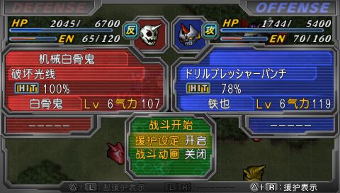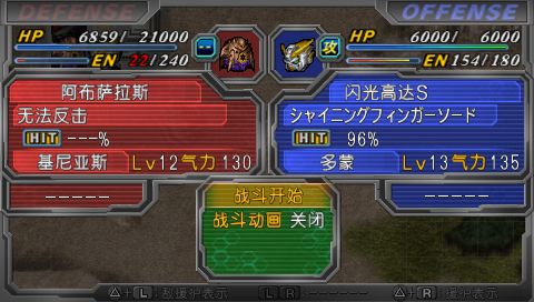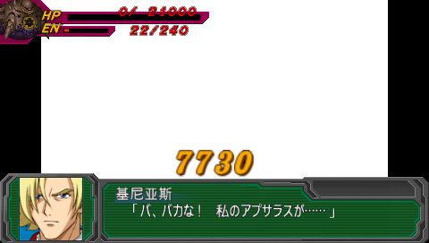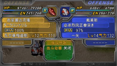 虽然是第一话,可还是很有难度的丫。主要是己方缺少回复手段,而且和阿克塞尔不同的是,拉米娅的第二精神为集中,安全系数和不屈比起来实在差太多。总之,灵活运用盖塔的三个形态和拉米娅的援护攻击,过关还是不成问题的。要塞鬼HP少于7000时会撤退,用盖塔光线加上风刃闪解决之,如果对BOSS的HP没有把握好,剩余量达到8000左右的话(比如余),就只好SL一下会心了。顺便说一下本作和以往不同的SL方法,好像就是只能用用其他攻击来消耗乱数,直接SL是无用的,不过相反地,也可以利用已知的小乱数来实现一些命中率小于10%的命中奇迹。