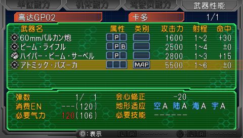 别忘记说得,虽然属性实在是很汗,身为高达机师连魔神系的命中回避都比不上,对0080MS特别有爱的可以一用