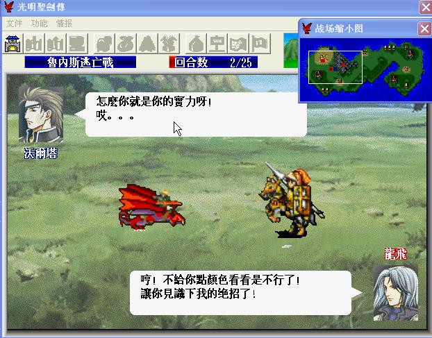 本游戏由火焰之纹章------圣魔之光石这游戏为素材的剧情改编.... 本人在游戏中扮演一位年轻的将军(龍飛) 希望大家喜欢我的作品.....能多多的支持我..或给我一些游戏的见意!