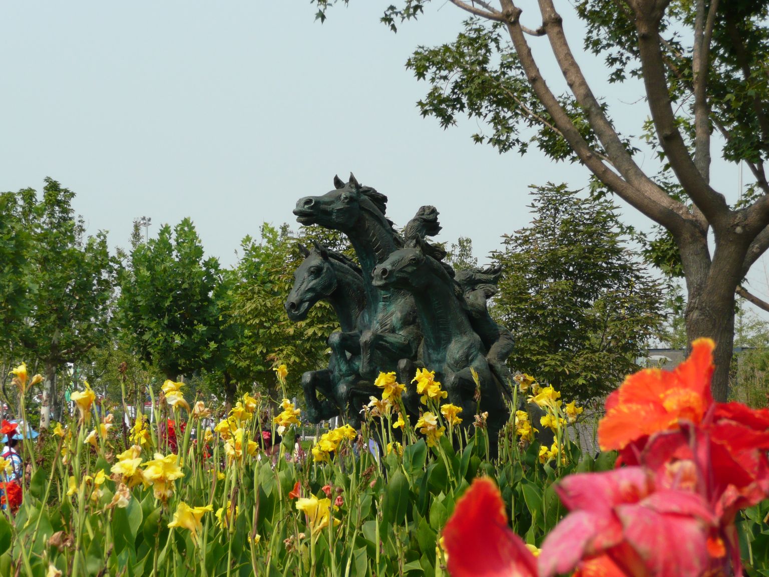 5.奥林匹克公园的花丛和背后的赞助商展厅
