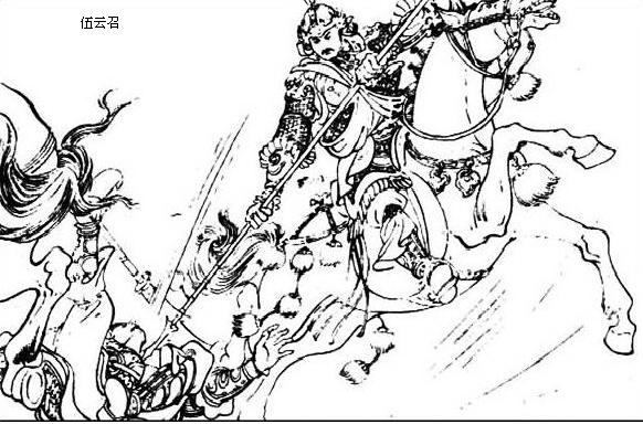 隋兵败走,云召追至长平冈,只听一声炮响,闪出埋伙四将,领了三千人马,拦住去路。后面那四员大将,听得炮声呐喊,连忙领兵从后面杀来。云召急引兵回时,韩擒虎又差二员大将,一员是陈州总兵吴烈,一员是曹州参将王明,各带兵马五千,四面围住。云召东冲西突,随兵愈加众多,云召手执长枪,杀上前面,四将来迎,云召大喊一声,竟冲四将。那四将抵敌不住,被云召刺死三将,一将往前逃走,又被云召一箭射死,前军四散逃生。云召从后追来,两胁下伏兵齐起,吴烈、王明,各执大刀,一齐杀来。云召在中央独战二将,全无惧怯,不上五个回合,吴烈中枪落马。王明要走,也被云召一枪,结果了性命。军士乱逃,被云召把青虹剑乱砍,如砍瓜切菜一般,不消半个时辰,四将皆丧在沙场。可怜麻叔谋帐下十二员将官,俱伤于伍云召之手。只逃走了麻叔谋。