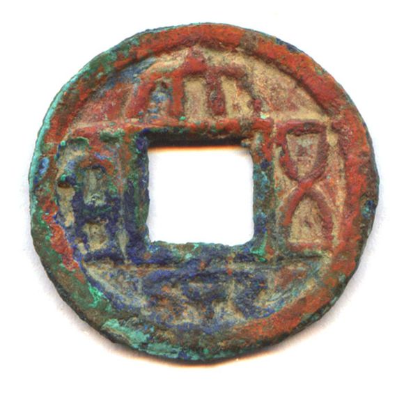 汉灵帝中平三年(公元186年)铸行四出五铢,所谓的“四出”就是钱幕从穿的四角各模铸一道线直抵外廓。外廓较宽,钱径2.5cm,重约3.4g。但它生不逢时,在卖官鬻爵极度腐败的黑暗时期面世,其时黄巾余波未平,当权者被社会舆论“窃言侈虐已甚,形象兆见,此钱成,必四道而去。”(见《后汉书.宦者列传》),也因此被宦官视作不祥的凶兆,董卓入京后“钱果流布四海”。