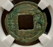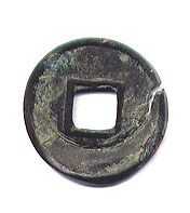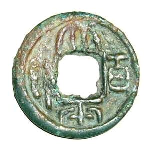 汉灵帝中平三年(公元186年)铸行四出五铢,所谓的“四出”就是钱幕从穿的四角各模铸一道线直抵外廓。外廓较宽,钱径2.5cm,重约3.4g。但它生不逢时,在卖官鬻爵极度腐败的黑暗时期面世,其时黄巾余波未平,当权者被社会舆论“窃言侈虐已甚,形象兆见,此钱成,必四道而去。”(见《后汉书.宦者列传》),也因此被宦官视作不祥的凶兆,董卓入京后“钱果流布四海”。