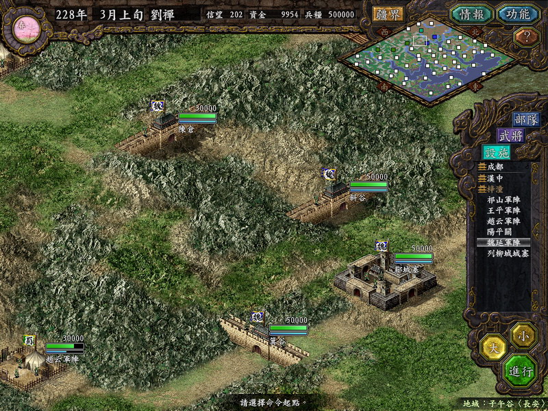 一个武侯北伐时期的短剧本,剧情以马谡屯兵山上开始,玩家让蜀汉逆转这个战役,保街亭不失,并攻克长安...