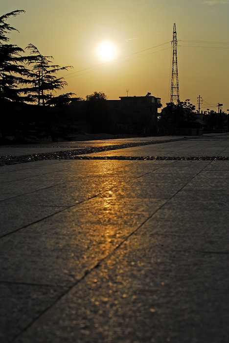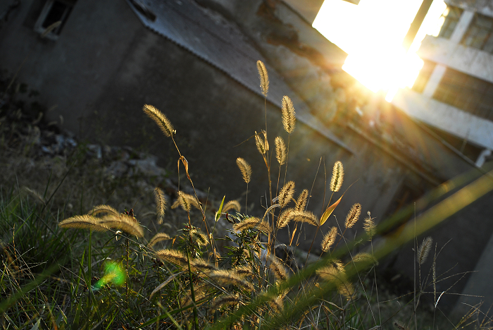 : [施工工地内冲光下的茅草]