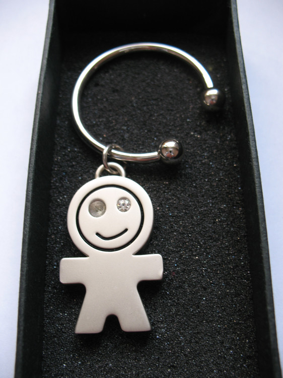 独眼小人,整体造型简洁,水钻镶饰的左眼很调皮的样子,加上上面的半环同样构成不完全感,只是我一直没搞明白这个有缺口的半环怎么挂钥匙?