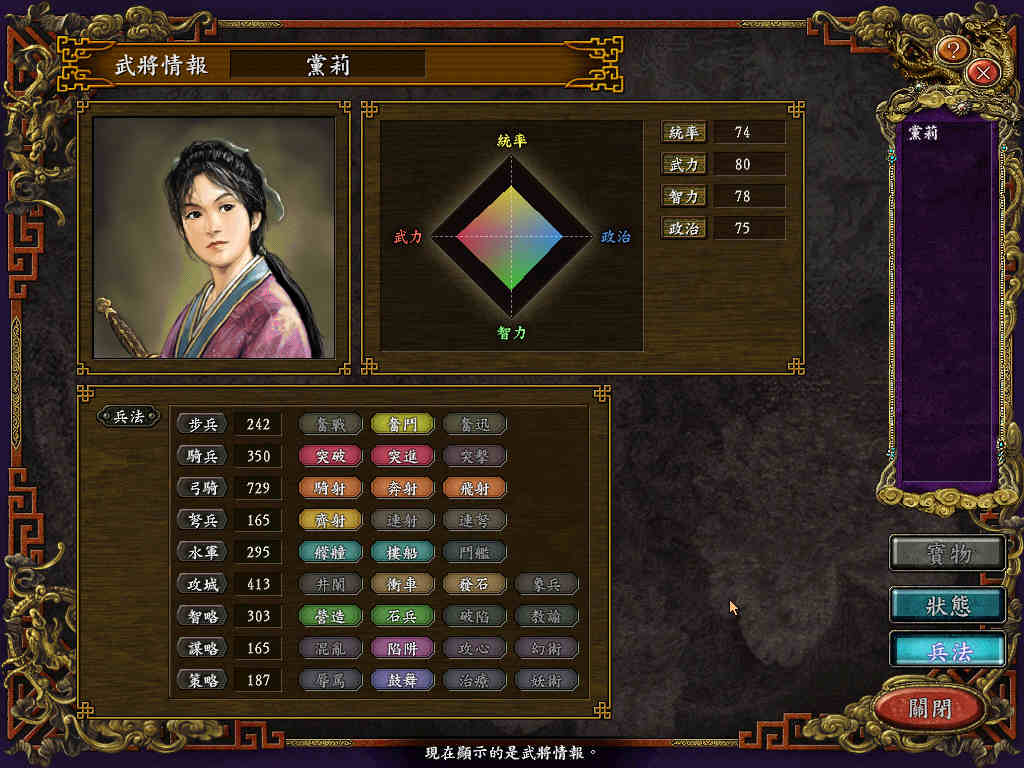 第一个小兵培养完成,五围一般,但兵法还是挺不错的。