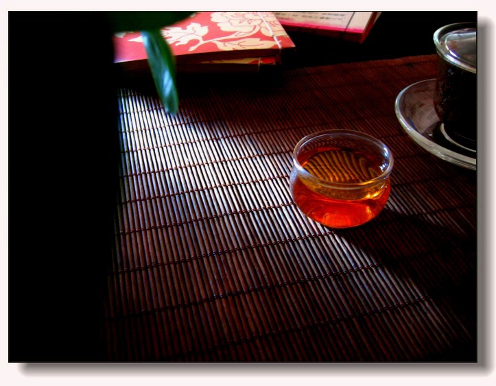 红茶配上红色茶具相得益彰,那串珠子让人有些想起了红麝串。