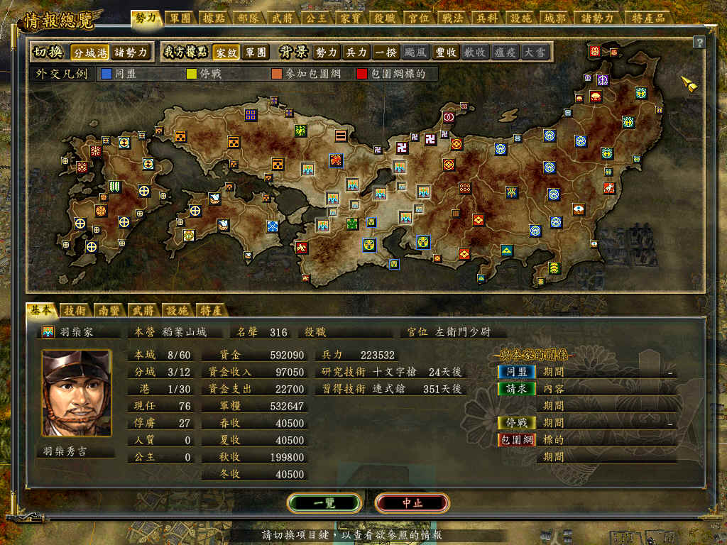往西,是毛利家,势大,硬碰会吃亏的;往东北,如果下吃浅井家最后一坐城,就开始与本愿寺接触,而南下,吃掉筒井家,就与德川家接触,这样就被三大势力包围着,很容易被形成“包围网”的。