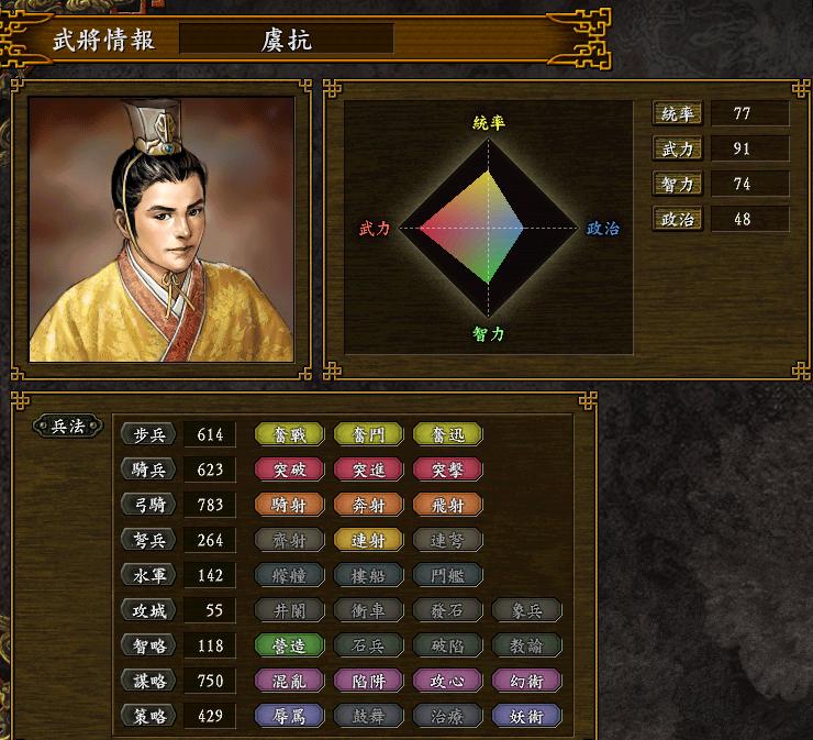 有一点很重要,小兵的最大四围。有人培养小兵时学了n多兵法,出来一看,怎么四围全是70几?(大耳第二?)原因在于小兵的最大四围低。如果小兵的武力极限是75,再怎么练,他的武力也超不过75。