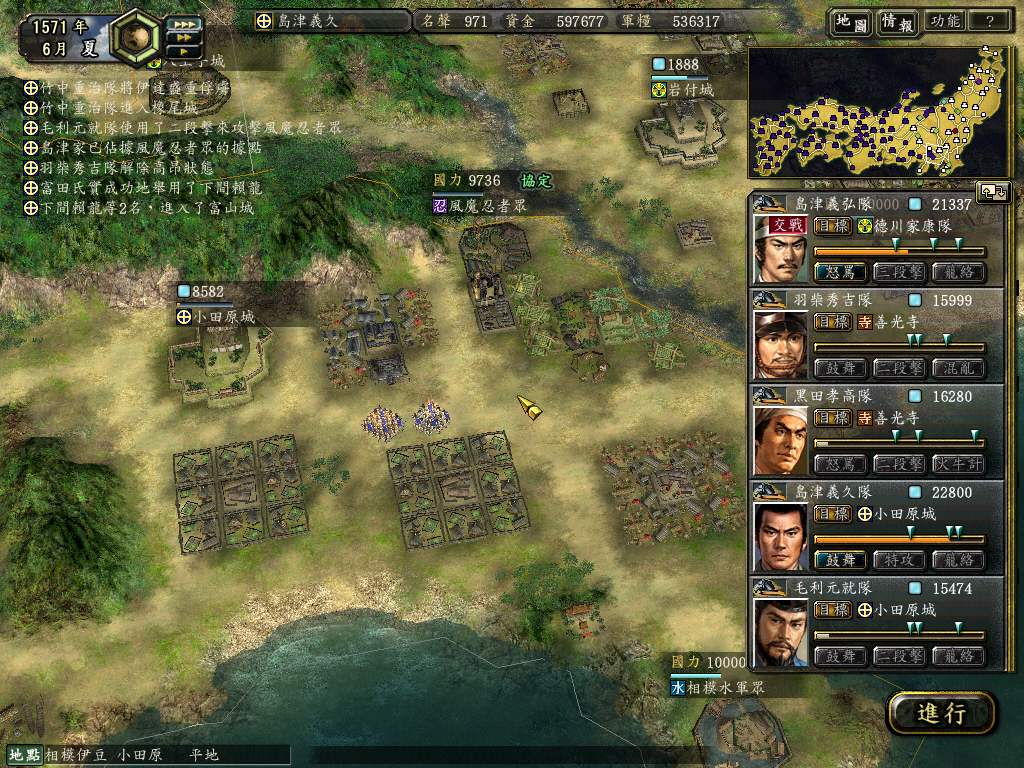 义久从东海北上后,拿下小田原,协定风魔忍,继续进攻。