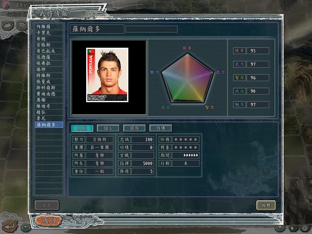5项数值的分配是最大问题,感觉教练的智力和政治可以加强,球员就不要给这2项了,否则像卡卡这样的牛人太破坏平衡了,后卫的统率可以加强,否则怎么对抗前锋?