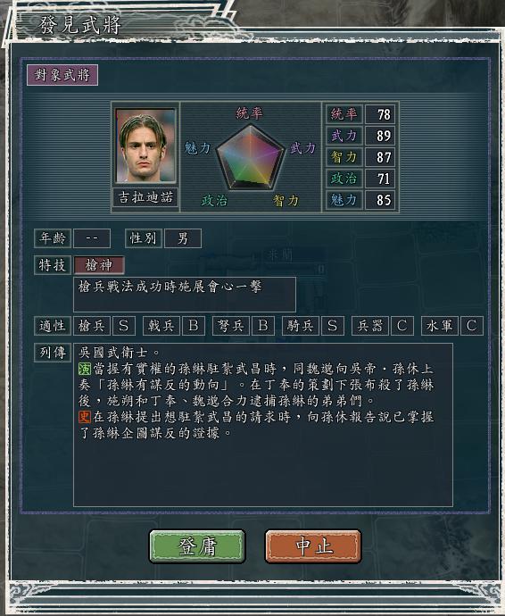 时间比较紧,就没有编辑列传,希望大家谅解,我先睡觉去了,希望大家多提提意见啊
