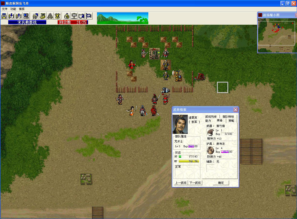 比如第5关,诸葛英穿4级衣,还吃1统,敌人打他都是个位数。如果我是s/l狂人,绝对可以在只有15粗和3精的情况下把它练满2敏。不过这没意思,我肯定不会这么做。这就是游戏玩人,而不是人玩游戏。我在序篇中已经写清楚,我享受的是对整体关卡的把握以及走位布阵的乐趣,而不是向电脑施舍全中或全miss,追求极限护具和武器经验值。