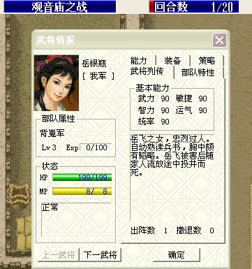 所以,正常打的话,要得到完美的背嵬和女兵,就一定要刷能力。这两种兵种的培养,稍后再说。下面先介绍统制和游奕。因为他们有1/4的概率刷出“完美”的属性来,成功率很大。