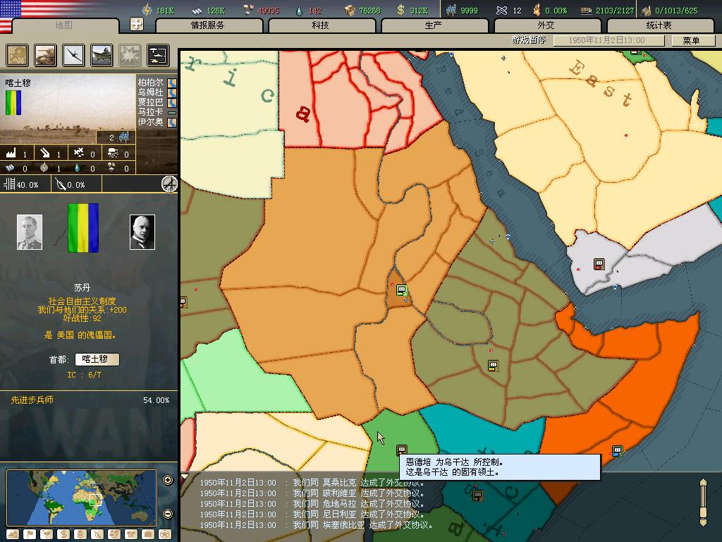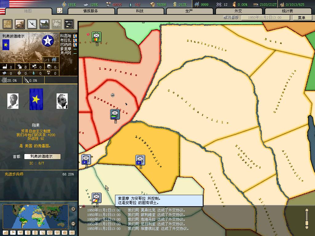(刚果金和安哥拉必须要先放后者才能完成当今两国的版图,另外,刚果金的固有版图居然有基加利,我曾经放过一次卢旺达,但是这样就放不出版图如此之大的刚果金了,最后还是舍了卢旺达)