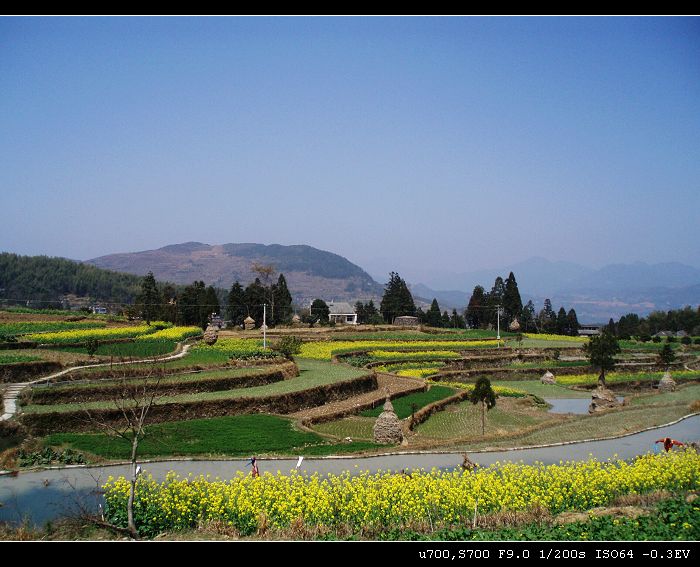 没法,我们决定欣赏了茗岙油菜花田就去碧莲镇上解决温饱问题,哈哈。用完餐后驱车开动,遇见美景,我们就停车拍摄。