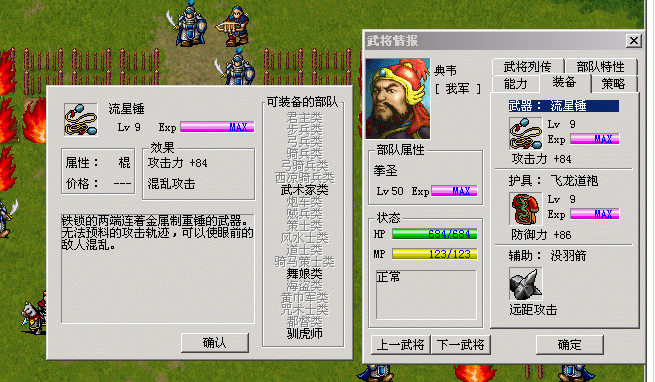 还是举个例子: 蛇矛 属于 特殊枪 可以装备的职业大概有 骑兵 。。等,