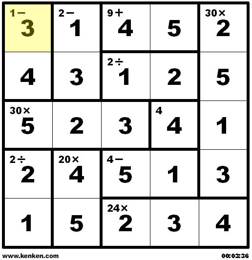 2、在每个格子填上数字使得每个粗黑线围成的笼子(cage)按给出的运算得到所给答案。