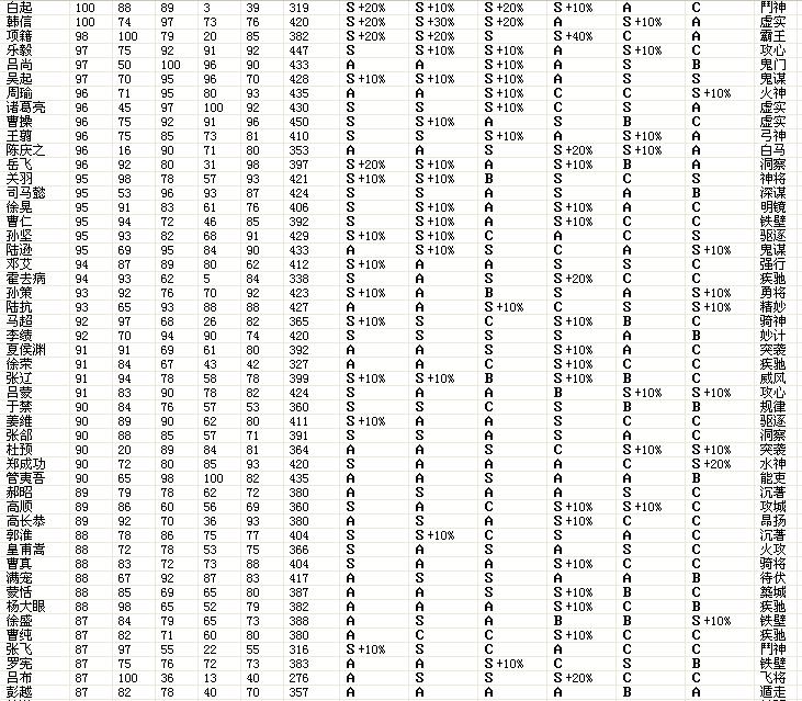 4 除去吕布的骑兵为S20甘宁水军S20,神级将领适性不超过S10(古代武将不在此限制) 以方便玩家组队。