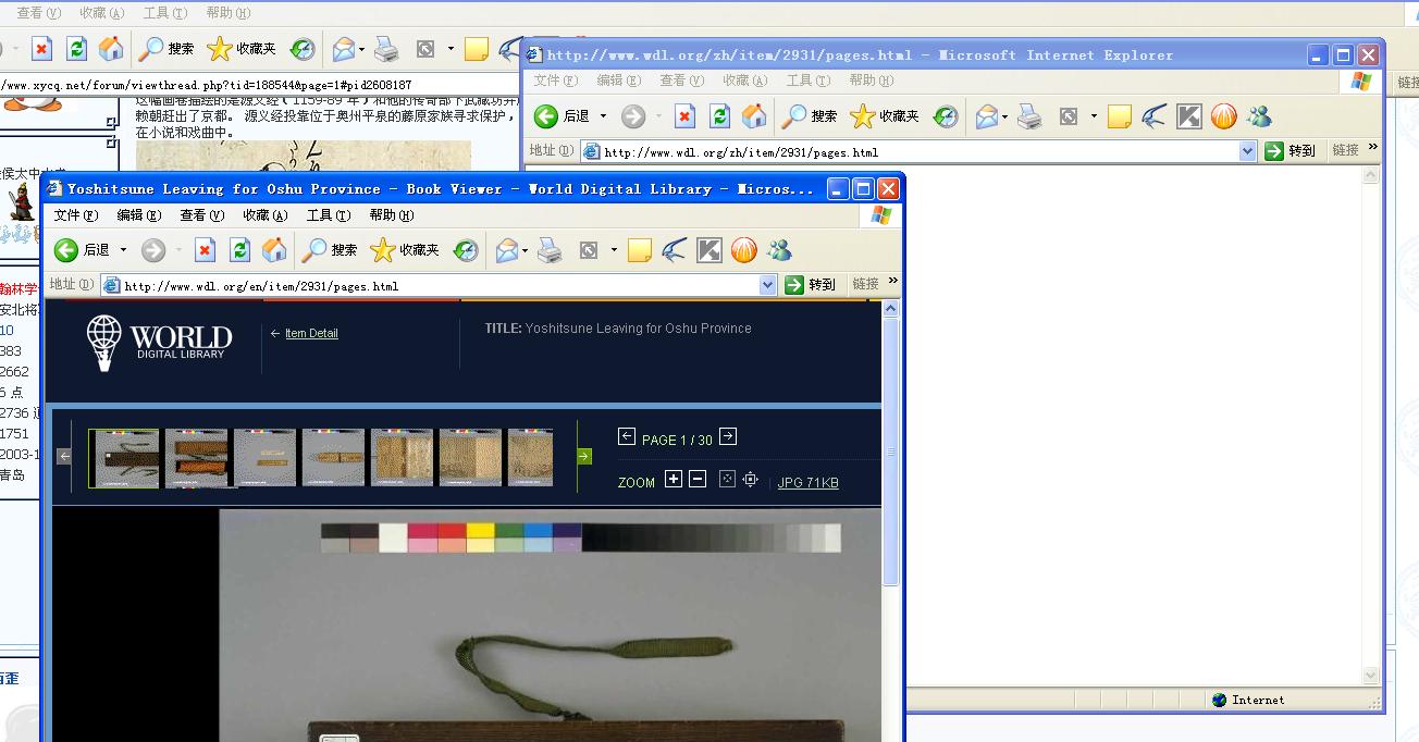 这幅画卷描绘的是源义经(1159-89 年)和他的传奇部下武藏坊弁庆(?- 1189 年)的故事,源义经是一位 12世纪 末期的军官。 源义经取得一系列卓越的战功后,为哥哥源赖朝(1147-99 年)所猜忌。 源义经被源赖朝赶出了京都。 源义经投靠位于奥州平泉的藤原家族寻求保护,但是在强大哥哥的追捕下,最终走投无路被迫自尽。 源义经和武藏坊弁庆的悲剧故事在日本一直流行,自室町时代(1336-1573 年)起该故事便出现在小说和戏曲中。