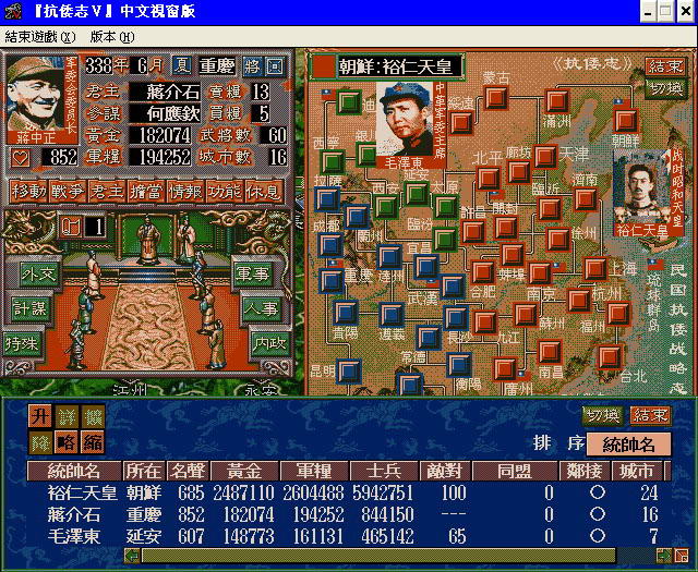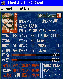 本遊戲是基於繁體中文視窗版《三國志五》抗日題材