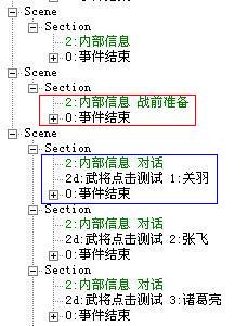 但是Scene下有两个及以上的Section,就要按蓝框部分加上各种测试指令(点击、变量、状态等)
