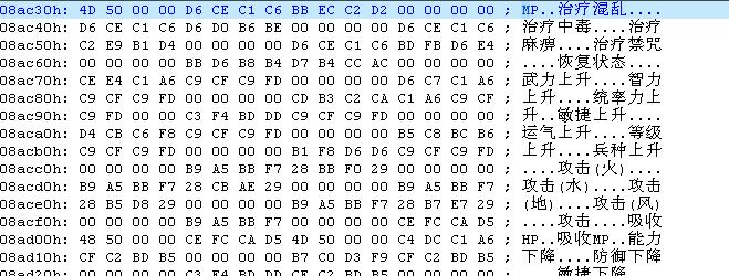 可是在EXE中8AC30开始的位置如附件所示 是一些道具的使用效果等等。