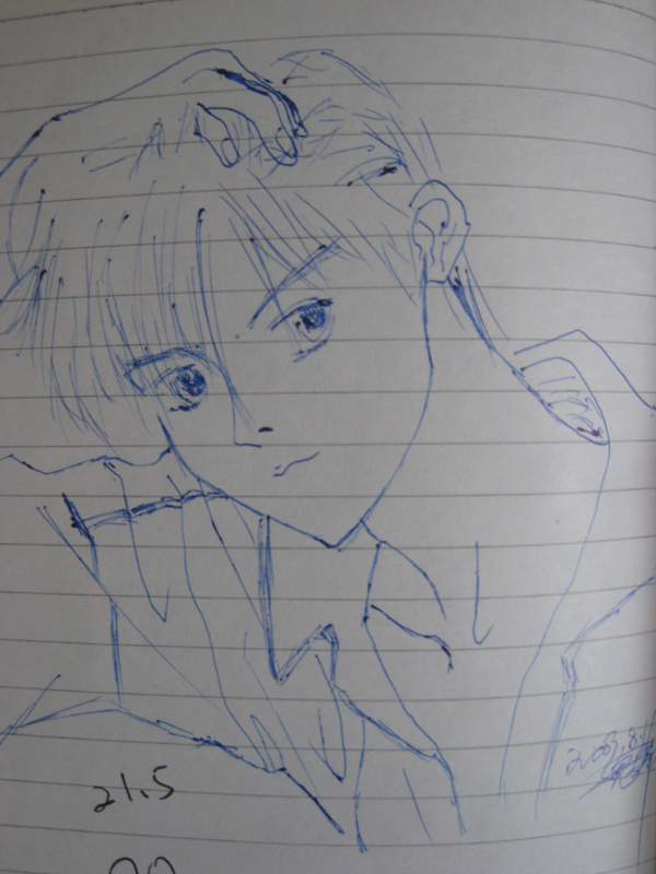 学生时代的吧。今天翻箱子找到了这本笔记。印象中应该还有几本。上课的时候开小差画的。现在都找不到了。。囧~
