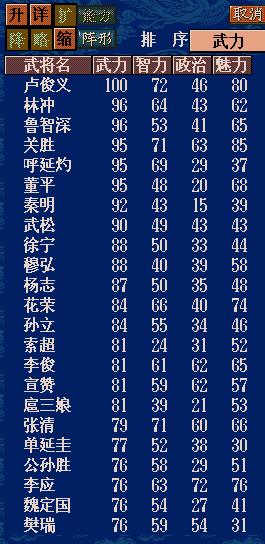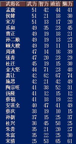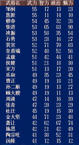 秦明勇猛6(有过怯战-1,不然为7),冷静为0(霹雳火嘛)