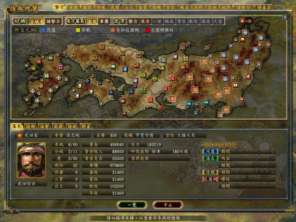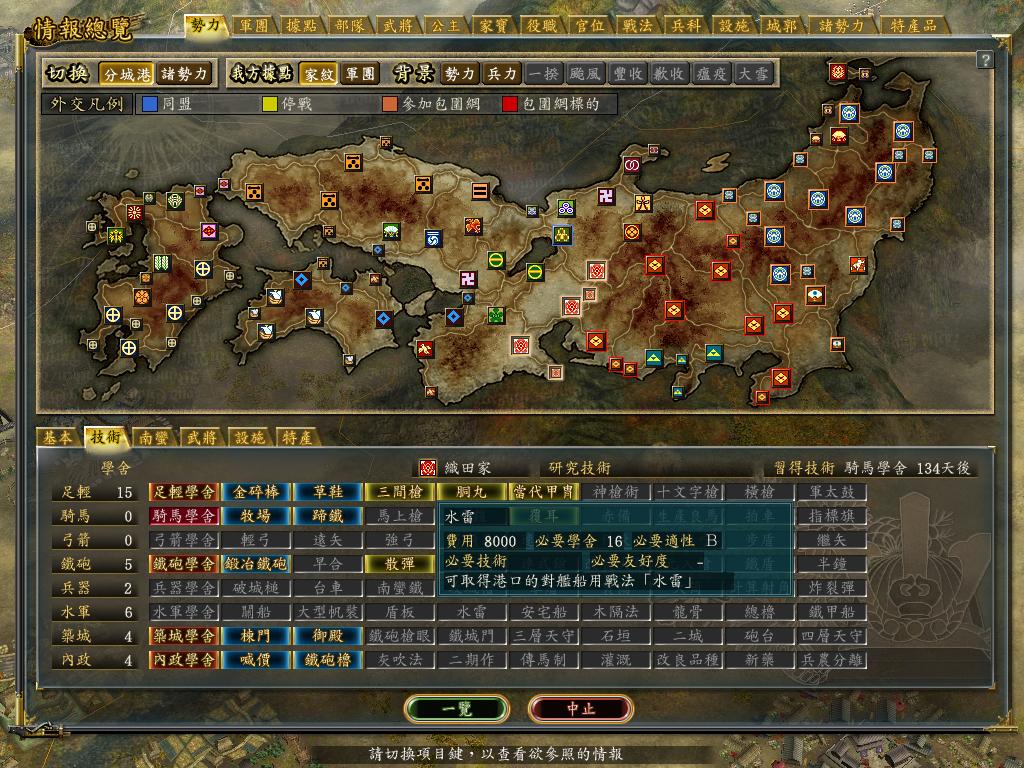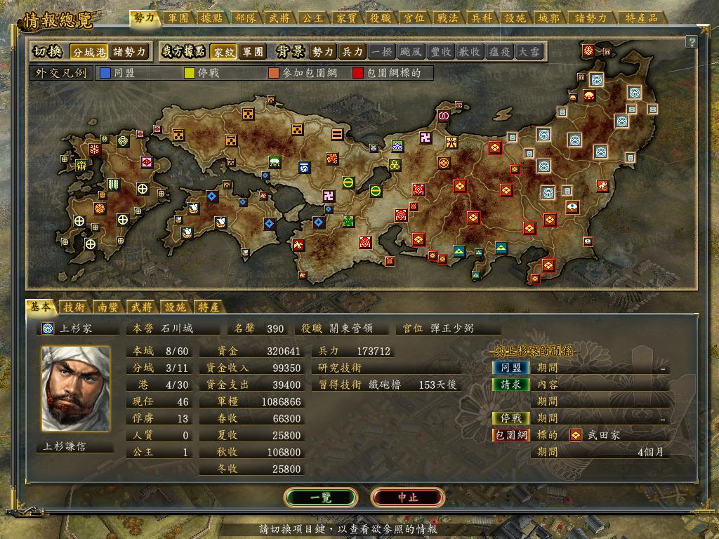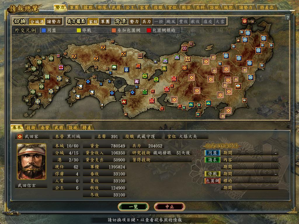 武田的骑兵太厉害了,我选信长,只有守的份,根本攻不过去,和军神同盟的,但是学不到好的技术.德川给他灭了,现在就在我城市旁边
