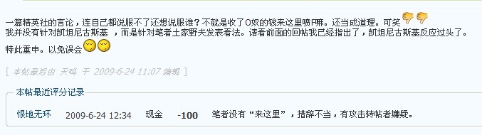 在史区经略使张建昭与天鸣沟通后,天鸣在原回帖和投诉帖中进行了辩解,但没有修改相关言辞。