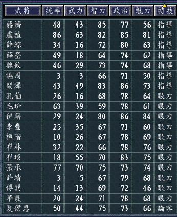 对于相当一部分垃圾武将来说,设置特技是非常困难的,所以难免有些牵强附会,期待理解。