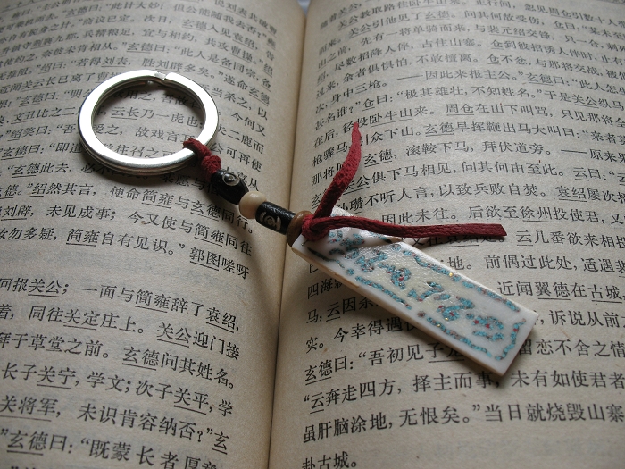 鑰匙釦,也是牛骨的,上面的是經文。
