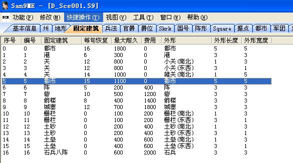 最后耐久的设置自行调整 再用san9me 修改消息文件 把地域的名称修改的更加合理以配合城市据点的存在
