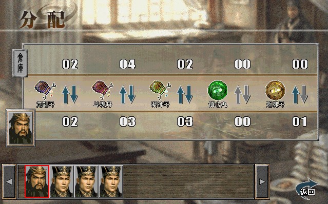 (p.s. 1、镇心丸在原功能基础上增加一个功能,我方是疲劳过高时可恢复疲劳,电脑带着则意义更大,每回合恢复的疲劳值=镇心丸数量;2、敌人也会携带丹药,例如虎牢关的吕布带有单挑的两丹和觉醒丹,打起来更不简单。还有,关于单挑秒杀,敌我都是在有单挑2丹其一时才能防秒杀,也就是说,即便敌人是无双武将,只要他没丹,一样有可能被秒)