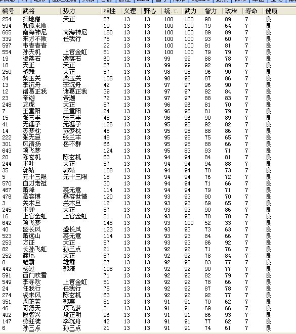 五 全部出场人物 625名,简单的介绍图(人物图中的 “项飞梦” 不用担心,在游戏中只看见一个项飞梦 属性也正常,其余都是死亡状态)